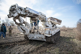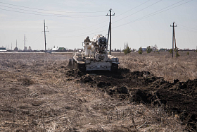 - Основное преимущество данной машины — это её ходовая база, основанная на базе танка Т-72, что позволяет ей проводить работы в труднодоступных участках местности. В случае возникновения какой-либо угрозы и ландшафтного пожара данная машина может быть оперативно переброшена на этот опасный участок для создания минерализованных полос, - пояснил Александр Витальевич.