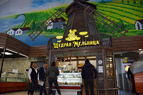 Как пояснил Александр Борисович, мельницы имели огромное значение в истории развития Кургана и нашего региона в целом. «С XVII по XIX век земледелие и обработка зерна были основными занятиями населения нашего региона. Поэтому мельницы имелись буквально в каждом поселении, они делились на два типа – водяные и ветряные. Для оформления нашей торговой точки мы взяли за основу ветряную мельницу шатрового типа, дополнением к ней стал балкончик, характерный скорее для мельниц западных регионов нашей страны. Наша «Щедрая мельница» воссоздана таким образом, что, если ее установить на улице и подключить жернова, конструкция будет работать», - уточнил Александр Мишкарёв.