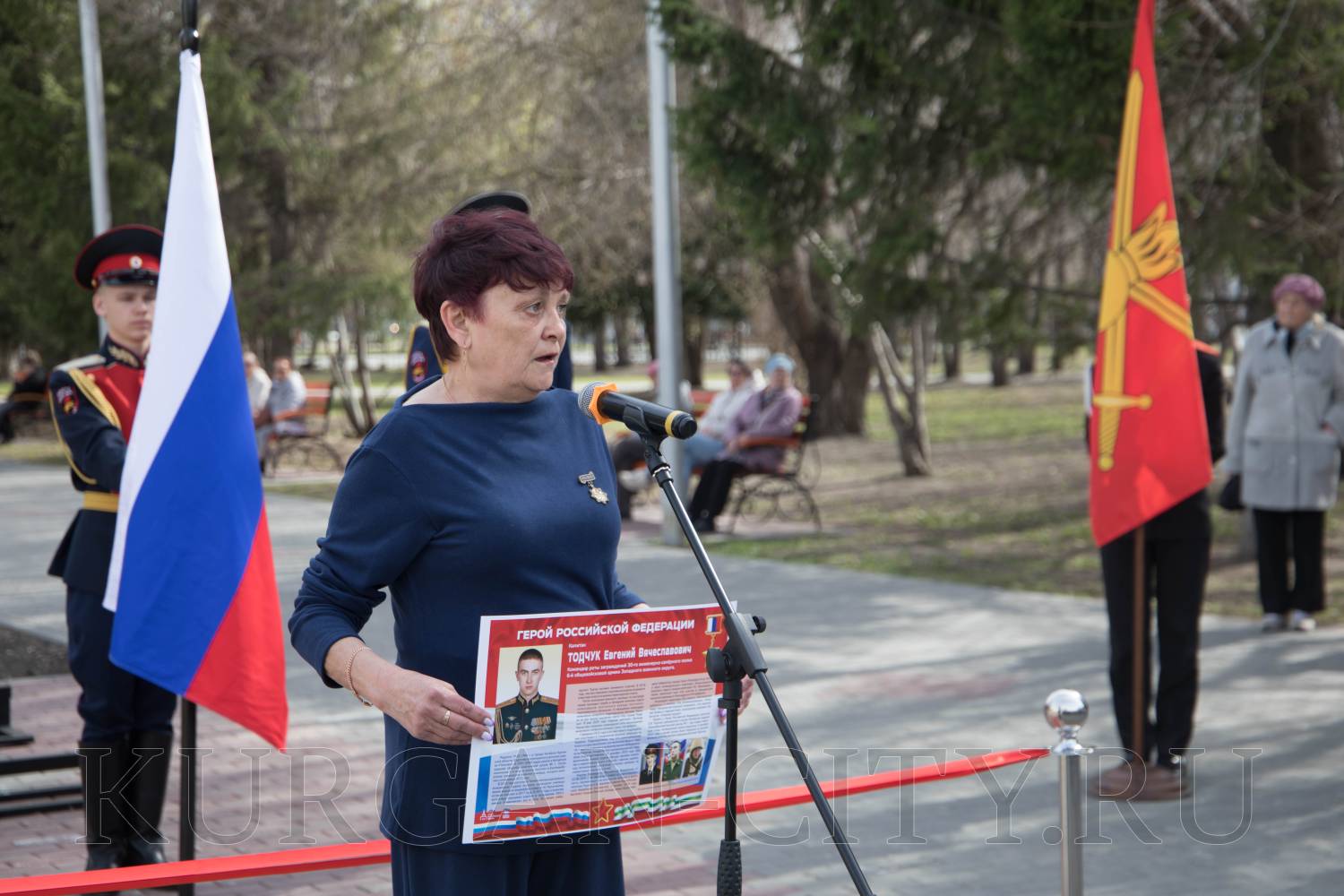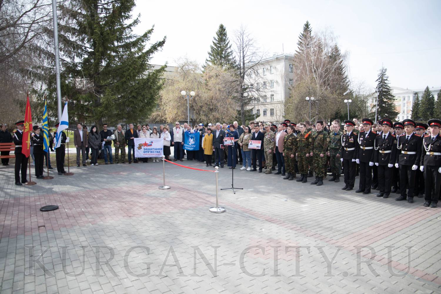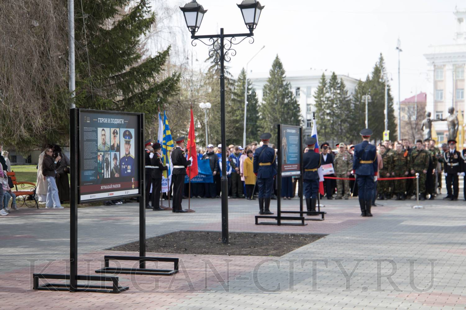 В Городском саду Кургана сегодня состоялось торжественное открытие выставки «Герои и подвиги» в рамках историко-просветительского проекта, который реализуется Российским военно-историческим обществом с 2022 года. Проект посвящен участникам специальной военной операции – современным защитникам Отечества, которые продолжают славные традиции героев Великой Отечественной войны. На мероприятие собрались ветераны специальной военной операции, родители и родные Героев СВО, кадеты и школьники, студенты, представители регионального общественного движения «Волонтеры Победы».