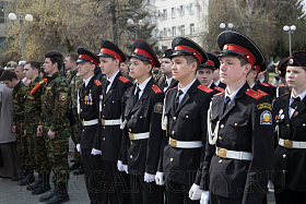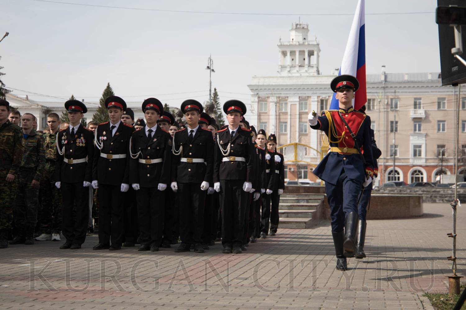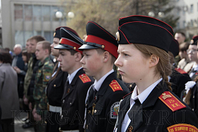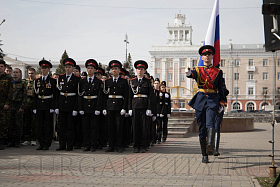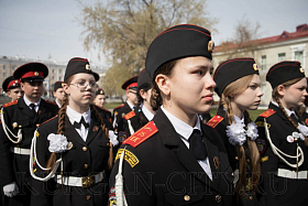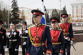 Знаменная группа поста № 1 школы № 75 имени Героя России Е. В. Родькина внесла Государственный флаг Российской Федерации.