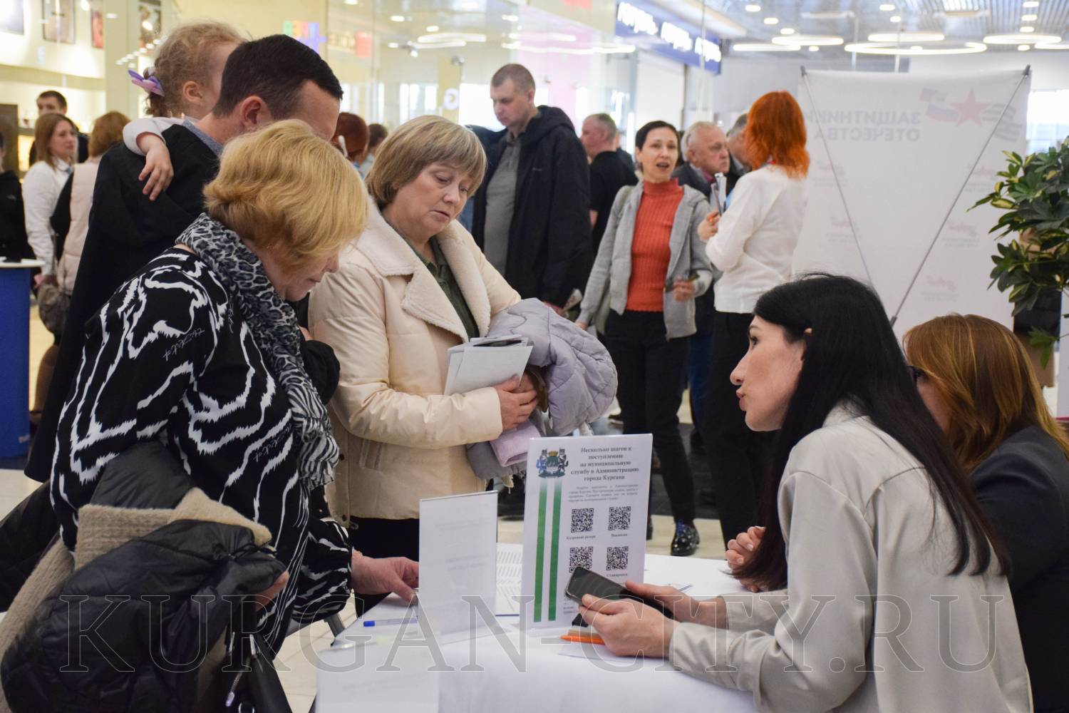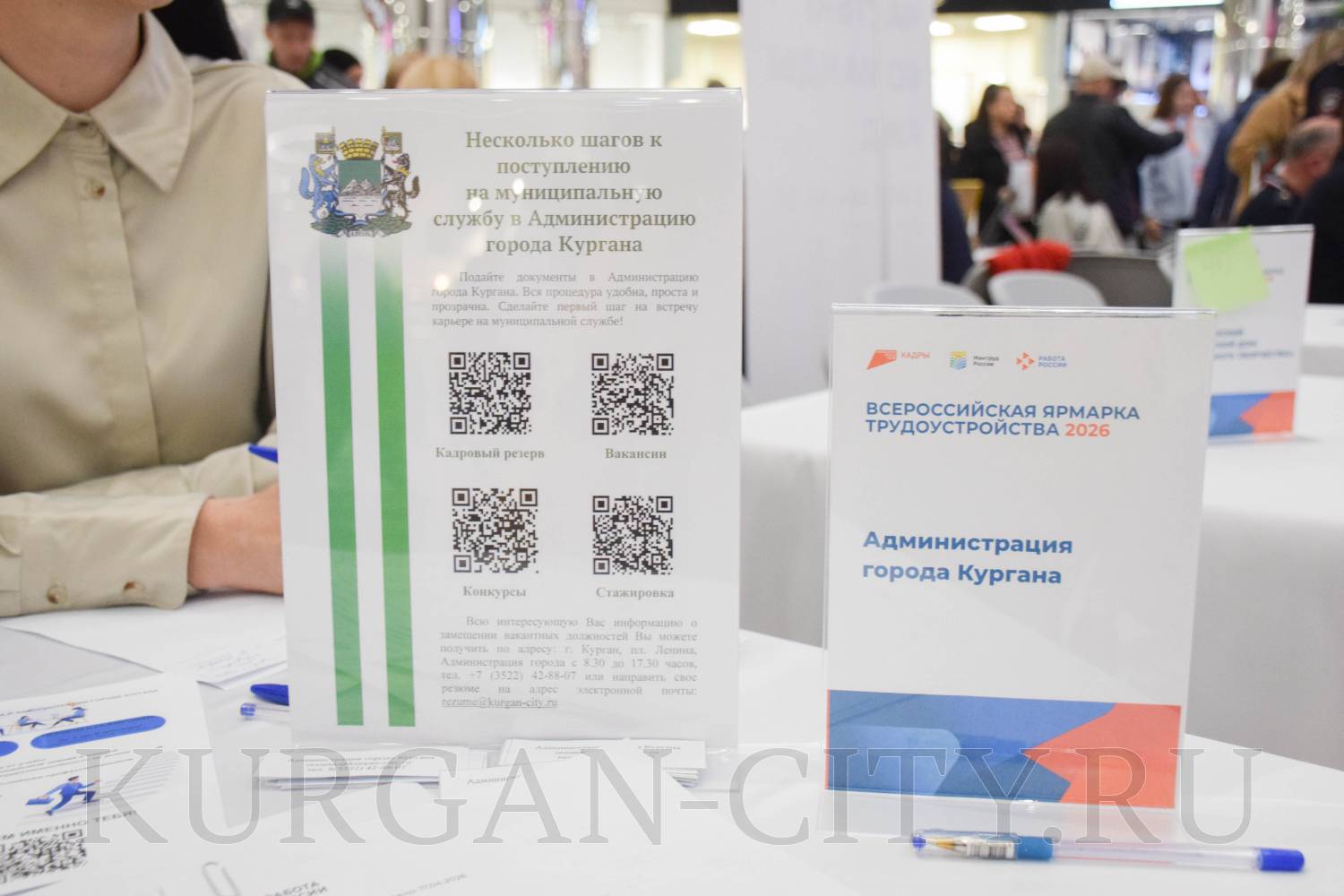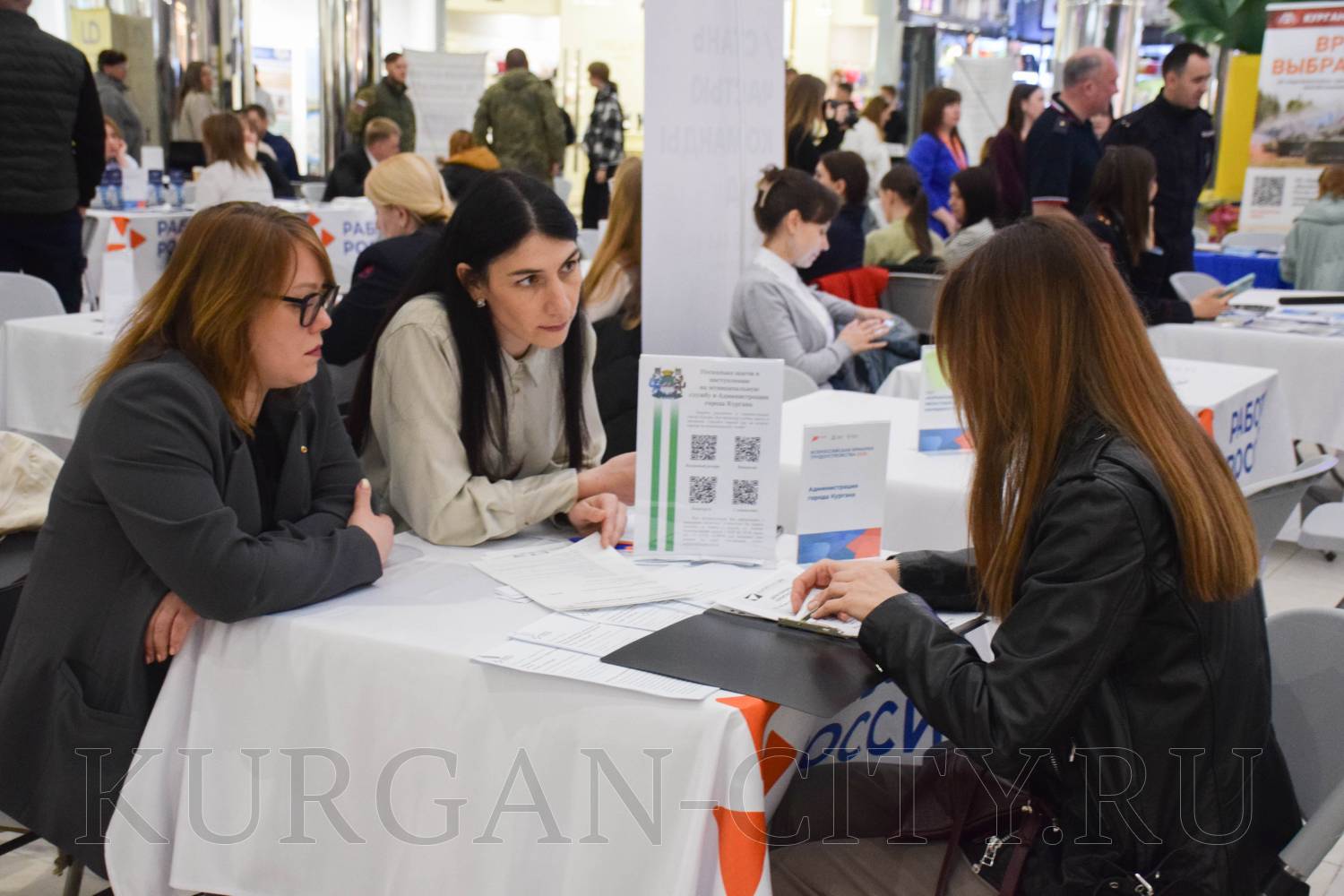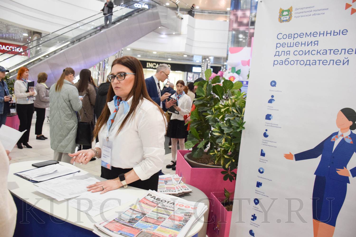 Сегодня в Кургане в рамках регионального этапа Всероссийской ярмарки трудоустройства «Работа России. Время возможностей» прошла ярмарка вакансий предприятий Кургана и Курганской области. Мероприятие было организовано на площадке торгово-развлекательного центра «ГиперСити». Свои вакансии предложила и администрация города Кургана.