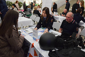 К примеру, площадка УМВД России по городу Кургану сегодня предлагала вакансии полицейского, полицейского-кинолога, полицейского-водителя. Сюда активно подходили молодые люди, которые примеряли бронежилет, шлем, разгрузочный ремень, который предоставили сотрудники ППС. Управление механизации «Строймонтаж» ищет машиниста бульдозера, машиниста экскаватора, водителя. Работодатели предлагали не только различные вакансии, также достойную оплату труда, расширенный соцпакет, увлеченно говорили о преимуществах работы именно на своем предприятии.